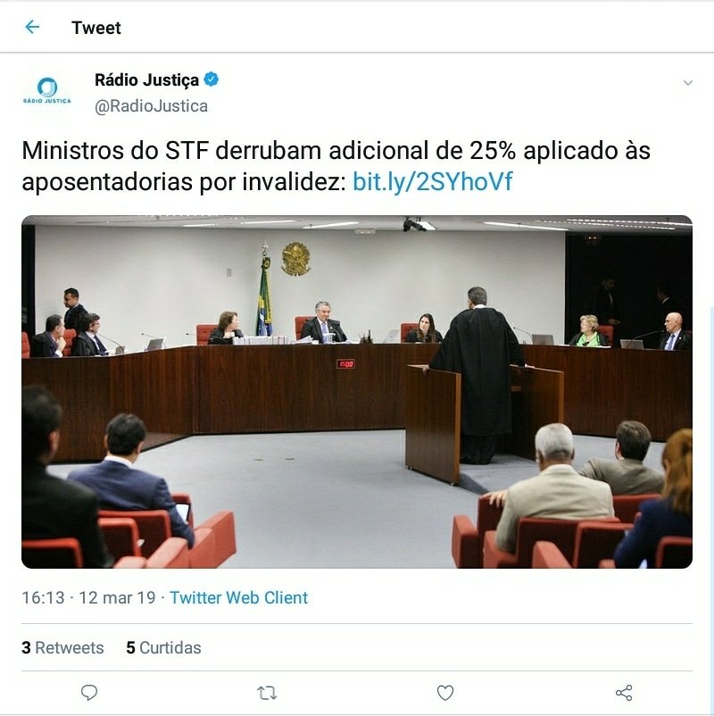 Confira o Tweet de @RadioJustica: https://twitter.com/RadioJustica/status/1105547350720823296?s=09