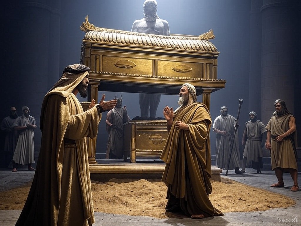Um dos episódios da narrativa bíblica que destacam o caráter e atributos da Divindade em sua revelação progressiva é aquele em que os filisteus vencem os hebreus na batalha de Ebenézer (I Samuel 4). Os israelitas levaram a Arca da Aliança como se fosse uma arma de guerra, carregada por sacerdotes corruptos, esperando que o Deus verdadeiro agisse para vencer a batalha pela simples presença do artefato de culto ali. Os filisteus lutavam por Dagom, o seu deus pagão, e derrotaram os hebreus, capturaram a Arca da Aliança e a depositaram aos pés de uma imagem de sua divindade, como expressão da superioridade desta sobre o Deus dos hebreus.